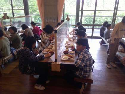 5年 花背山の家 『宿の朝ごはんは食べ過ぎてしまいがち 編』 公開日 2023/07/11 更新日 2023/07/11 5年生 朝食もバイキングです。ごはんとパンを選べます。味噌汁かオニオンスープを選べます。でも、おかわり自由なので結局どれもこれも食べれます。今日は登山がありますので、ここでしっかり栄養補給。水筒にもお茶を十分に入れて・・・。さあ、間もなく雲取山登山へ出発です。 ※登山中はケータイがほぼ圏外となります。ホームページの更新が遅れると思いますがご了承下さい。