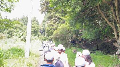 体調不良の子はいません。全員で登っているのが素晴らしい。でも、やっぱり登山はしんどい。特に慣れるまでの登り始めがきつい・・・。先がまだまだ見えないので、精神的に「本当に登れるのだろうか・・・。思った以上にしんどいぞ・・・」と、弱気になりがちです。とりあえず休憩して水分補給。さあ、今日の目当ては『挑戦』だったね。こんなところで、へこたれるわけにはいかない。