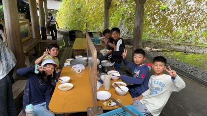 苦戦している班もありましたが、どの班もおいしいすき焼き風煮ができました。しかも、飯盒で炊いたご飯が最高においしかったです。ものすごくふっくらと炊けて、ほんのり香ばしい香りも。みんな1回目なのにすごいね。