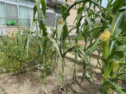 ポップコーン用のトウモロコシにも実ができ、大きくなってきました。