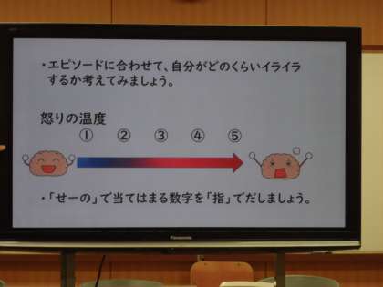 2学期はじめの身体計測がありました。今回は計測前に心の健康についてみんなで考えました。いろいろな場面を想定し、その場面では自分の怒りの度合いはどのくらいかを話し合いました。また、ペアをつくり、その友達はこの場面ではどのくらい怒るのかということを予想し、当てるゲームをしました。そこから分かったことは、怒りの度合いは人によって違うということです。そのことをしっかりと理解した上で友達と付き合っていくことが大切だということです。楽しくゲームをしながらも「なるほど。」とよく理解できたようでした。