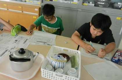 家庭科室の使い方について学習したり、家庭の中での家族の仕事について考えたりしました。家庭科室にあるいろいろな道具。それぞれがどんな仕事に使われるのかを調べてプリントにまとめました。