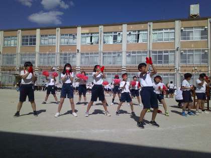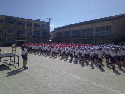 運動会が近づいてきました。今日は全校練習を行いました。まるで本番さながらの盛り上がりでした。