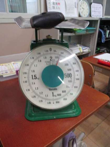 1キログラムのはかりや2キログラムのはかりで、教科書やランドセルをはかりました。