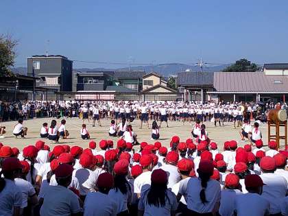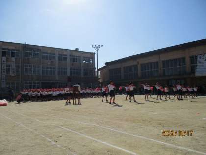 1018 運動会 エール交換 公開日 2023/10/18 更新日 2023/10/18 学校のようす 赤組、白組がお互いの健闘をたたえ合ってのエール交換。 応援団の気合の入った声と、みんなの元気な声が運動場に響き渡りました。