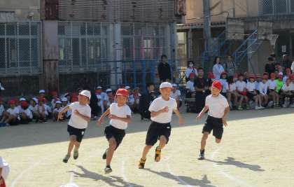 1・2年生は50m、3年生は80mを元気いっぱい走りました。