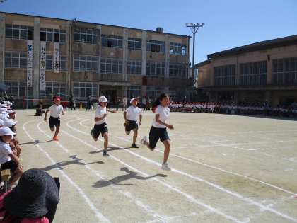 1018 運動会 徒競走(高学年) 公開日 2023/10/18 更新日 2023/10/18 学校のようす 高学年の部の健闘を祈っての応援合戦のあとは、 高学年の徒競走。 4年生は80m、5・6年生は100mを走ります。 体も大きい高学年の走りは迫力満点! 最後まで走りぬく、素晴らしい姿を見せてくれました。