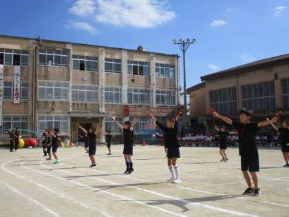 午後からは、白組の応援席を移動し、赤組と白組が並んで応援しました。