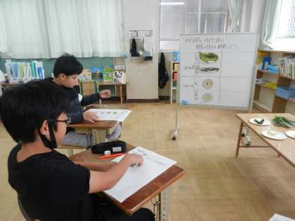 野菜やいもは、ゆでると、色や形、かさが変化することがわかりました。