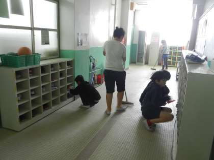 廊下と靴箱は、分担場所を決め、それぞれの場所をきれいにします。