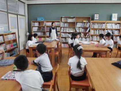 先日、各学級で図書室の利用についての学習がありました。本の見つけ方、借り方、返し方など司書の先生のお話を聞いて、理解している様子でした。これからたくさんの本を借りて読んでもらいたいと思います。