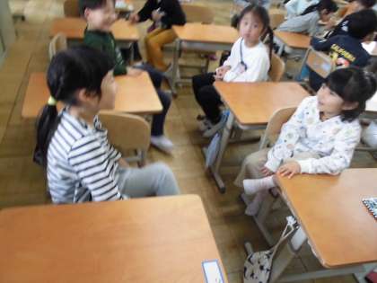 人権朝会後は教室で自分のよいところについて考えました。じっくり考えた後、お友達と伝え合いました。みんな一人ひとりによいところがあり、大切な人であること、同じようにお友達にもよいところがあり、大切な人であることを知りました。お互いを大切にし、新しくできたお友達とも仲良くしていってほしいです。