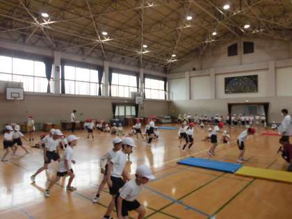 5月1日(水)に体力テストを行いました。当初の予定では、ソフトボール投げと立ち幅跳びでしたが、あいにくの雨だったため、体育館で反復横跳びと立ち幅跳びを行いました。ペアの記録を測ったり、応援している姿が見られました。