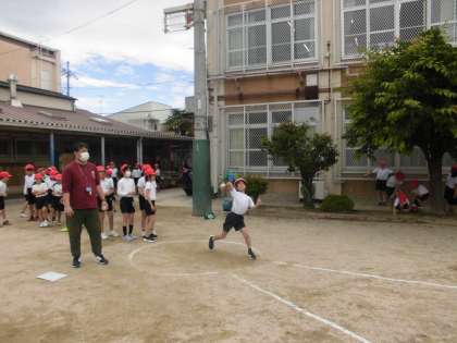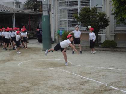 狭い円の中から出ないように投げることや、決められた範囲めがけて投げるのに苦戦している様子でしたが、それぞれの記録に挑戦して投げることができていました。