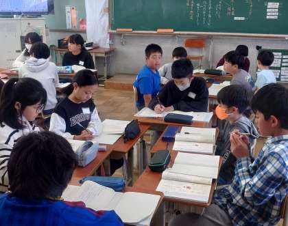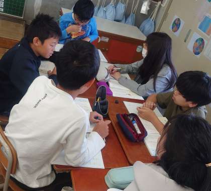 (昨年度より「HPがない!つくりましょう」と促され続け、一念発起しました。)第1弾は「話し合い活動」の様子を掲載します。ちょうど修学旅行のグループになって初のグループ活動(国語)でした。
