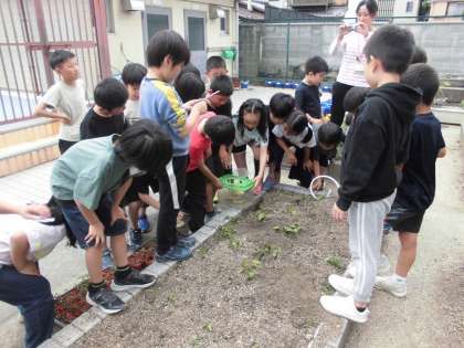 写真は、昼休みにモンシロチョウを逃がしている場面です。