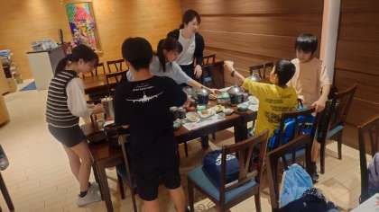 待ちきれない!とばかりに、みんな食堂前にとても早く集合。