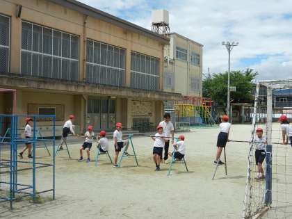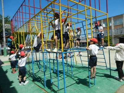 この日、2年生は遊具あそびを、3年生は体ほぐしを、4年生は鉄棒の学習をしました。