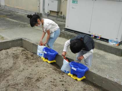 タネをまいて、やさしく土をかぶせて・・・水をたっぷりあげました。