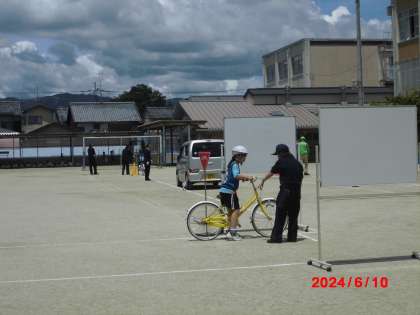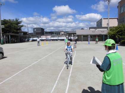 実技では、安全確認の仕方や、右折の仕方、乗り方、おり方を学習しました。また、おそ乗り走行やジグザク走行にもチャレンジしました。