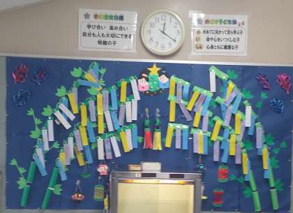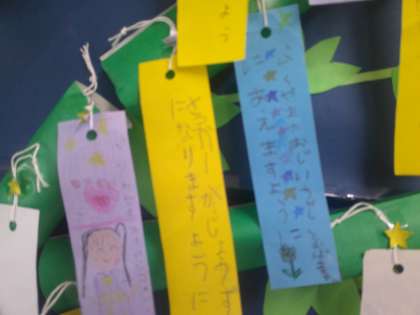 今回は、1年生の子どもたちの願いが込められた短冊とともに、とても素敵な七夕の飾りが出来上がりました。