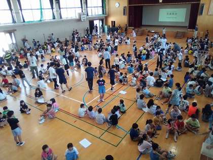 朝帯の時間に児童集会がありました。この児童集会は、全校児童が他学年との連帯感を強め、学校生活をより楽しく豊かに過ごすことを目的としています。