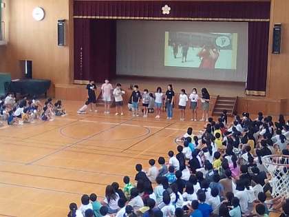ジェスチャーゲームでは、6年生の動きを見て、他学年の子どもたちは表現されているお題が何かを考えました。6年生が面白い動きをしてくれたり、いろいろな動きをしてくれたり、中には一瞬で終わったりしてどの児童も笑顔で楽しむ姿が見られました。