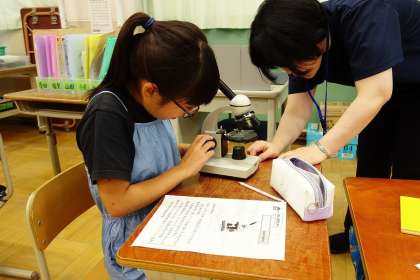 顕微鏡を使うと、目や虫メガネでは見えにくいものを、拡大して詳しく見ることができます。