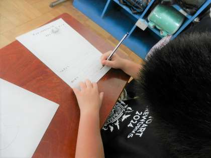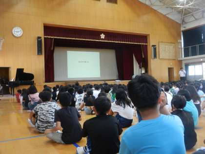 始業式では、「一生懸命に頑張る姿はかっこいい」という校長先生のお話を聞きました。オリンピックや高校野球の写真を真剣に見ていました。