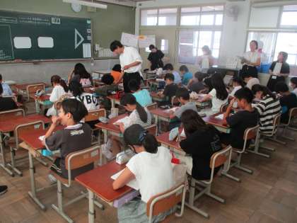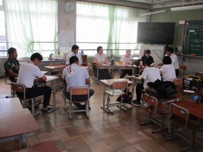 大淀中学校・美豆小学校・明親小学校の教職員がそれぞれのグループに分かれ、授業を参観し研修に取り組みました。