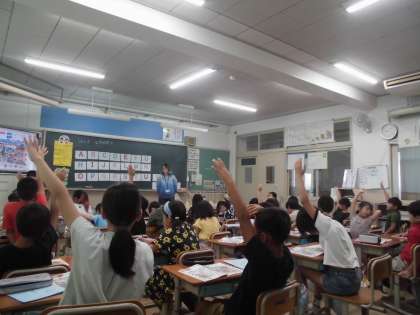 2学期もALTの先生の学習が始まりました。国語で学んだローマ字を思い出しながら、発音したり、イラストからアルファベットを探し出したりしました。