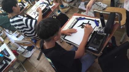 友達と一画一画協力して書いたり、アドバイスし合ったりしながら、書写の学習をしました。一人で書くときよりも、どうすればもっと上手に書けるのか考えているように感じました。最後に、友達と話し合ったことを生かし、一人一人が清書に取り組みました。