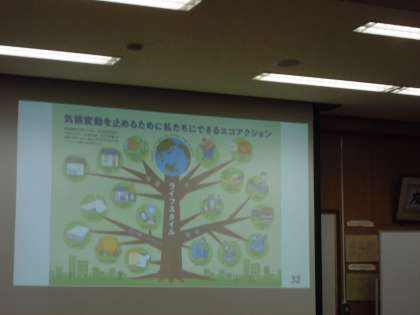 今日は、区役所の方に来ていただき、地球温暖化を防いでいくために区役所や京都市が取り組んでいることについてお話していただきました。節電や、エコバックの持参など、自分たちにできることに少しずつ取り組んでいきたいなぁという思いをもちました。