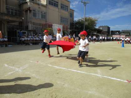 きらりん☆50m走では、運動場を駆け抜ける姿がとても素敵でした!きらりんピック☆では、ジャンボリミッキーを踊ったり、きらりんBOXを運んだりなど一生懸命頑張っていました。ほかの学年の競技でも1年生の「がんばれー!」という声が常に聞こえてきていました。