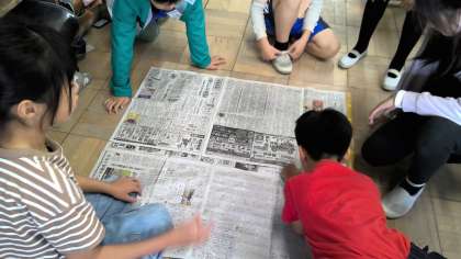 1平方メートルとはどのくらいの広さなのか新聞紙を使って作り、調べました。