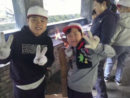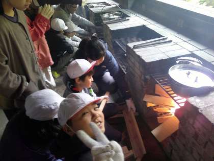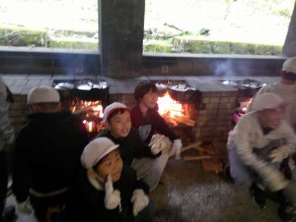花背山の家 『野外炊事 煙が目に染みる 編』 公開日 2024/11/07 更新日 2024/11/07 5年生 どこの班のかまどにも勢いよく炎があがります。煙がもくもく、目が沁みます。みんな泣いています。遠くから見たら、野外炊事に子どもたちが感動して涙しているように見えます。 少しずつ、ご飯炊く鍋も、カレーの鍋もぐつぐつしてきました。どんなカレーが出来上がるのか楽しみです。