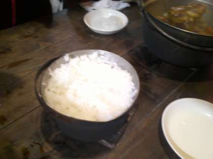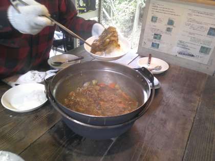 花背山の家 『野外炊事 カレー完成 編』 公開日 2024/11/07 更新日 2024/11/07 5年生 できました。とろっとしたルーがとてもおいしそうです。しかもご飯を見てください。子どもたちも思わず言ってました。「うわ〜、ご飯が光ってる〜!」と。薪で炊いた出来立てのお米です。米粒が立ち、ツヤツヤです。
