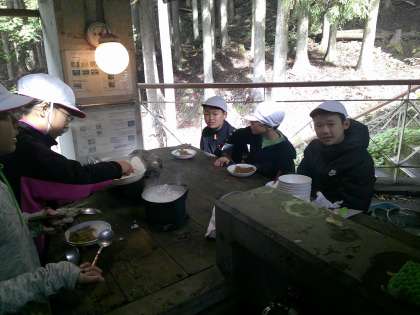 花背山の家 『野外炊事 うまいっ!! 編』 公開日 2024/11/07 更新日 2024/11/07 5年生 一つの班も失敗することなく、抜群においしいカレーをつくることができました。たくさんの子どもが「家のカレーよりもおいしい!」と言っていました。親としてはうれしいような悲しいような・・・(笑)。