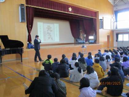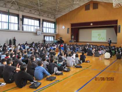 その他、干支にまつわる話や、どんな3学期にするかは自分で決めて自分が行動するということ、そんなみんなを先生たちは一生懸命に応援してサポートするよという話をしました。