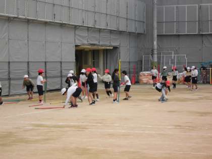 今年初めての体育は、3年生全員で行いました。とても寒い中子どもたちは元気に、「ねことねずみ」や、「障害物サーキット」、「ボール運び」に取り組んでいました。誰とでもペアを組んで、みんなで協力している姿が見られました。