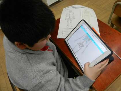 「筋肉ってどうなっているのか、模型を使って考えよう。」