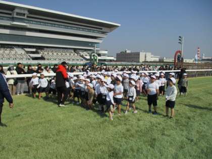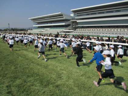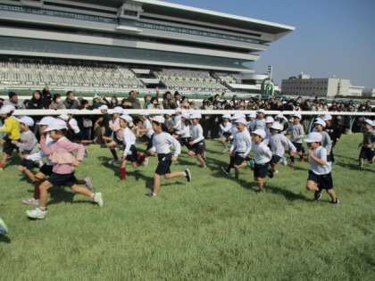 持久走大会が開催されました。1年生にとっては初めての持久走大会。初めての競馬場の芝生。想像よりも広くて驚いたようです。とてもよいお天気のもと、たくさんの歓声を浴びながら力いっぱい走ることができました。「頑張ったよ!」「しんどかったー!」「一度も歩かなかったよ!」と口々に感想を話していました。また一つ大きくなった1年生の姿がありました。
