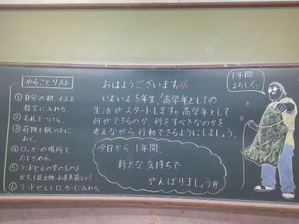 校長のまど 『始業式前日の教室の黒板 その2』 公開日 2025/04/17 更新日 2025/04/17 校長のまど このままでは黒板を使って学習できないので、授業が始まればどこかのタイミングで消すことに・・・。子どもたちから『消しちゃダメ〜!!』と、悲鳴が聞こえてきそうす・・・。