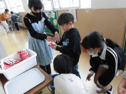 0418 1年生 6年生に教えてもらいながら 公開日 2025/04/18 更新日 2025/04/18 1年生 給食も今週からスタートしています。 「小学校の給食おいしいな」と言いながらたくさん食べています。 給食を食べた後には、牛乳パックを洗うやり方を6年生が教えてくれています。
