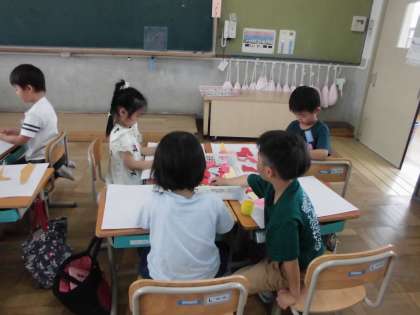 図画工作科の「やぶいた かたちから」の学習です。