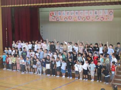 2年生から6年生までが、1年生のために言葉や歌をプレゼントしました。一生懸命な子どもたちの姿に心を打たれます。