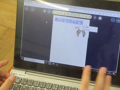 パソコンであいさつ運動のポスターを作っている計画委員会