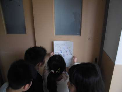 学校たんけんに向けての2年生の準備の様子です。学校たんけん直前には自分達が作った特別教室の看板を丁寧に貼りに行きました。事前にインタビューさせてもらった先生にも見てもらいました。また、学校たんけん当日の開会式・閉会式の練習、どんな順でまわるかということ、1年生とどのように接するかということ・・・たくさんのことを考えてきました。