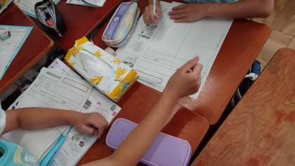 月曜日の調理実習に向けてグループごとに打ち合わせをしました。必要な用具の確認、調理の手順など入念にチェックしていました。