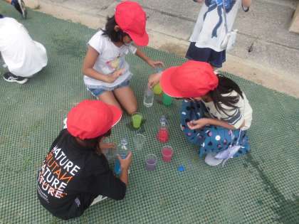 図工の学習で、色水を作りました。